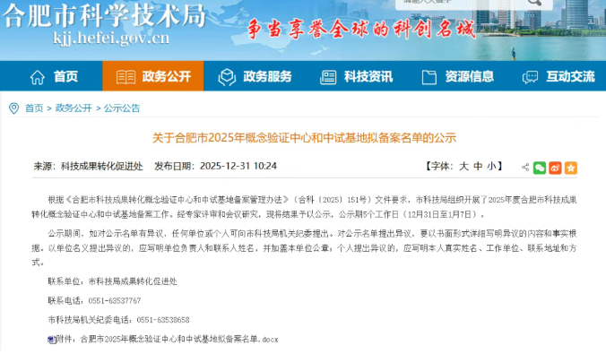喜讯!中科兴皖入选合肥市2025年中试基地拟备案名单,助力细胞与再生医学成果转化2025年12月31日,合肥市科技局发布《合肥市2025年概念验证中心和中试基地拟备案名单》公示,安徽中科兴皖医学研究有限公司依托雄厚的技术研发实力与成果转化能力,申报的“合肥市细胞与再生医学转化中试基地”成功入选拟备案名单,标志着公司在细胞与再生医学领域的中试服务能力获得市级权威认可,这将进一步推动区域内相关领域科技成果从实验室走向产业化。2026-01-07